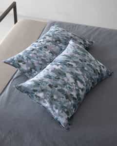 The Nap Rap Pillow Cases Set blends camouflage-inspired print with soft ramie fabric for a contemporary bedroom look. This two-piece set is bold yet versatile, pairing easily with neutrals or seasonal tones, and is made by Society Limonta for practical everyday use.