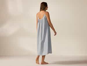 Light, airy and soft, the Isla Organic Cotton Night Dress is made from 100% organic cotton percale, offering breathable comfort with adjustable spaghetti straps for a personalized fit. A relaxed A-line silhouette with a calf-length hem and hidden pockets delivers easy movement and everyday practicality for lounging.