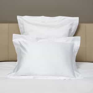Ginevra Sham is crafted from 100% extra-long-staple cotton sateen with a 600 thread count for a silky touch and subtle shine. Classic-style flanges with hemstitch finishing bring timeless elegance, and it is made in Italy.