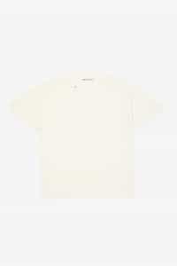 The Silk Tee in Ivory blends 30% silk with 70% cotton for a silky, breathable feel with a subtle sheen. A hand-finished heart stitch, seamless knit, crew neck and a boxy relaxed fit deliver everyday comfort and versatile style that pairs easily with warm-weather outfits.