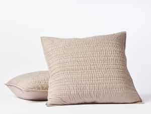 The Channel Handstitched Organic Sham adds comfort and style to your bedroom, featuring a quilted Crinkled Percale™ with hand-stitched horizontal lines and a soothing neutral palette inspired by Northern California's shoreline. Experience everyday luxury with its soft texture and elegant design, perfect for a tranquil setting.