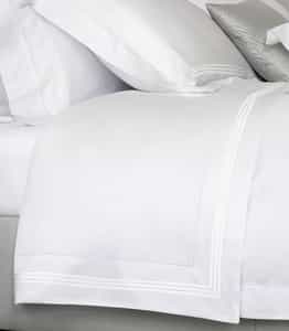 Granduca Flat Sheet blends 100% extra-long-staple SUPIMA cotton with Tuscan craftsmanship, delivering a silky, breathable hand and a crisp finish. Nuvola Percale 600 weave features a refined hemstitch with three embroidered lines, and it is proudly made in Italy.