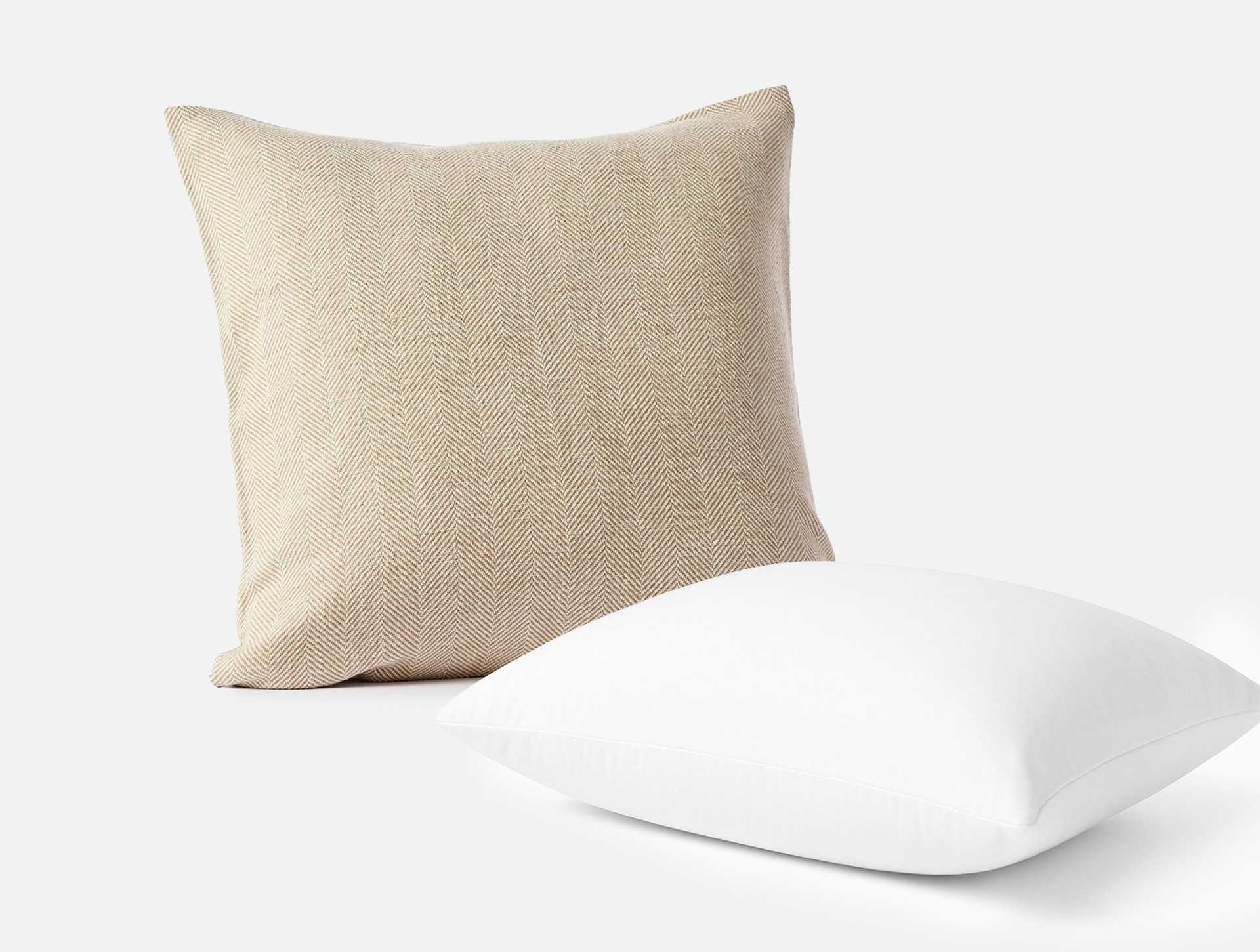 The Canyon Organic Decorative Pillow Cover + Pillow Insert Set features a textured herringbone weave and a soft, substantial handfeel. With an organic cotton shell and a fill of duck feathers and down from Indiana farms, third-party audited for animal welfare and no live-plucking or force-feeding, the set includes a decorative pillow cover and pillow insert and finishes with a knife-edge for a clean, minimalist look.