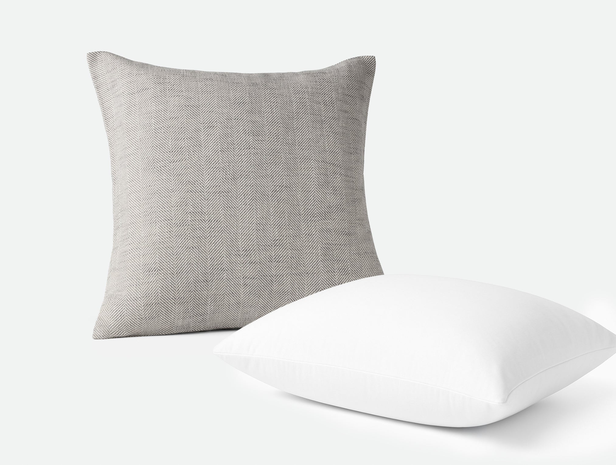 The Canyon Organic Decorative Pillow Cover + Pillow Insert Set offers texture and comfort inspired by a textural herringbone weave. Thick and thin slub yarns create depth, while a subtle pattern adds natural interest. A knife-edge finish keeps a clean, minimalist look.