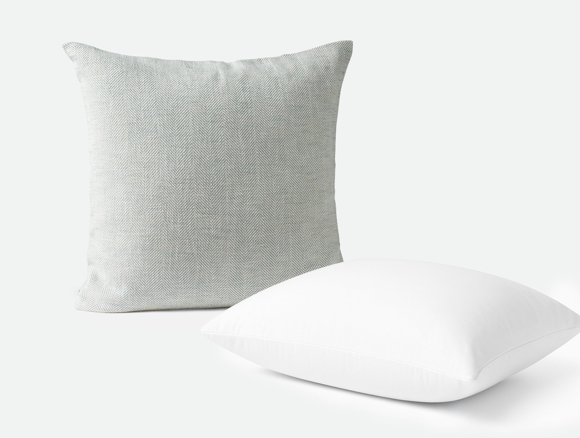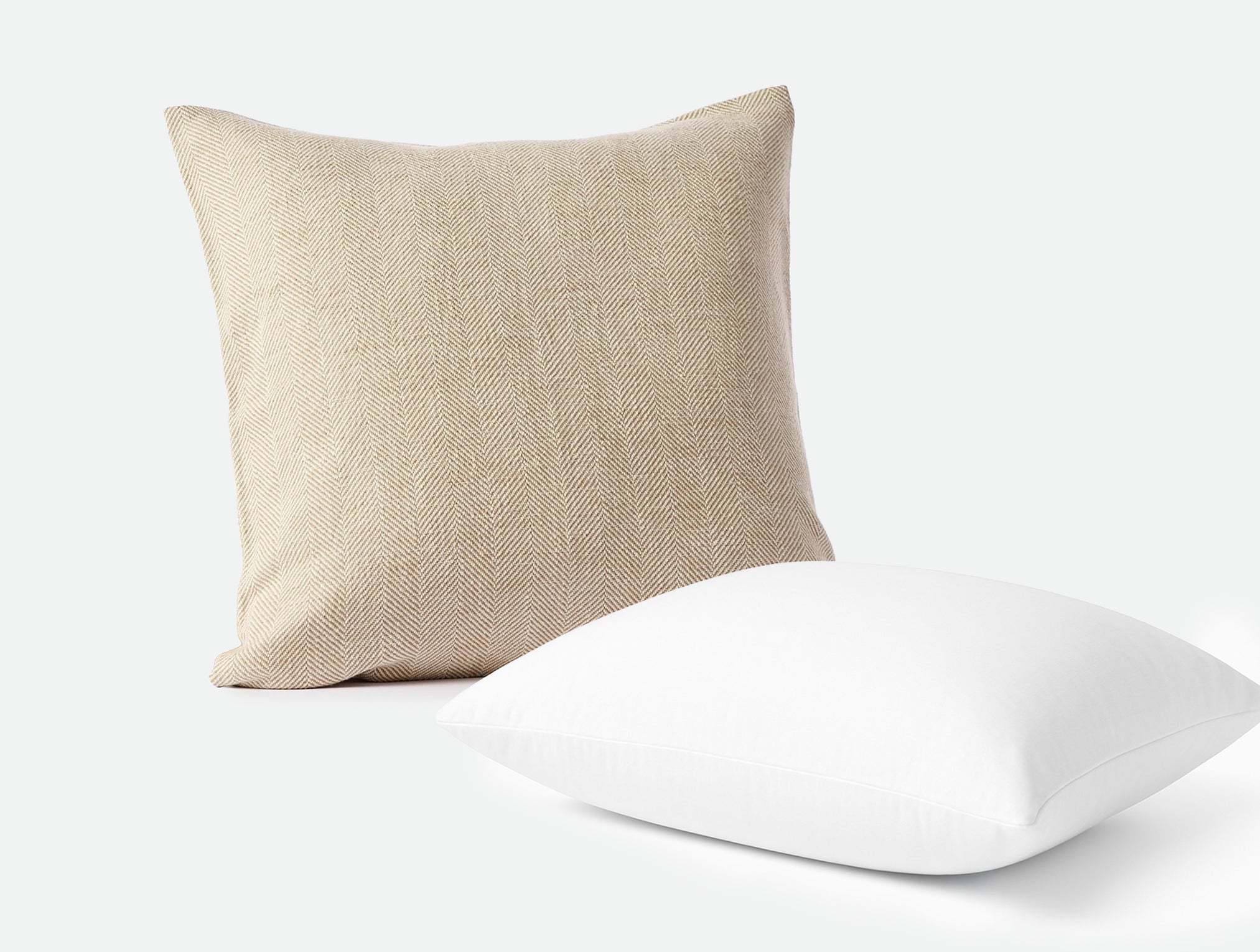 The Canyon Organic Decorative Pillow Cover + Pillow Insert Set delivers texture and comfort with a textural herringbone weave, thick and thin slub yarns, and a knife-edge finish for a clean, modern look. Includes an organic cotton shell with 230-thread-count, a pillow insert filled with duck feathers and down for loft, and animal welfare certified materials for a complete decorative cushion.