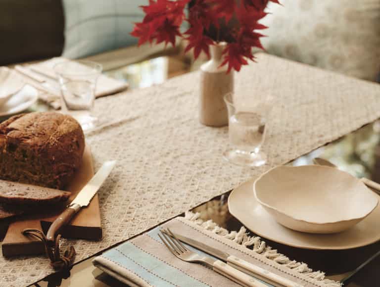 The Coral Bell Print Runner adds natural texture and refined style to the dining table with a vintage-inspired floral geometric print. Made from GOTS certified organic cotton and recycled linen, it offers a soft, durable surface that is easy to care for and versatile for everyday meals or special occasions.