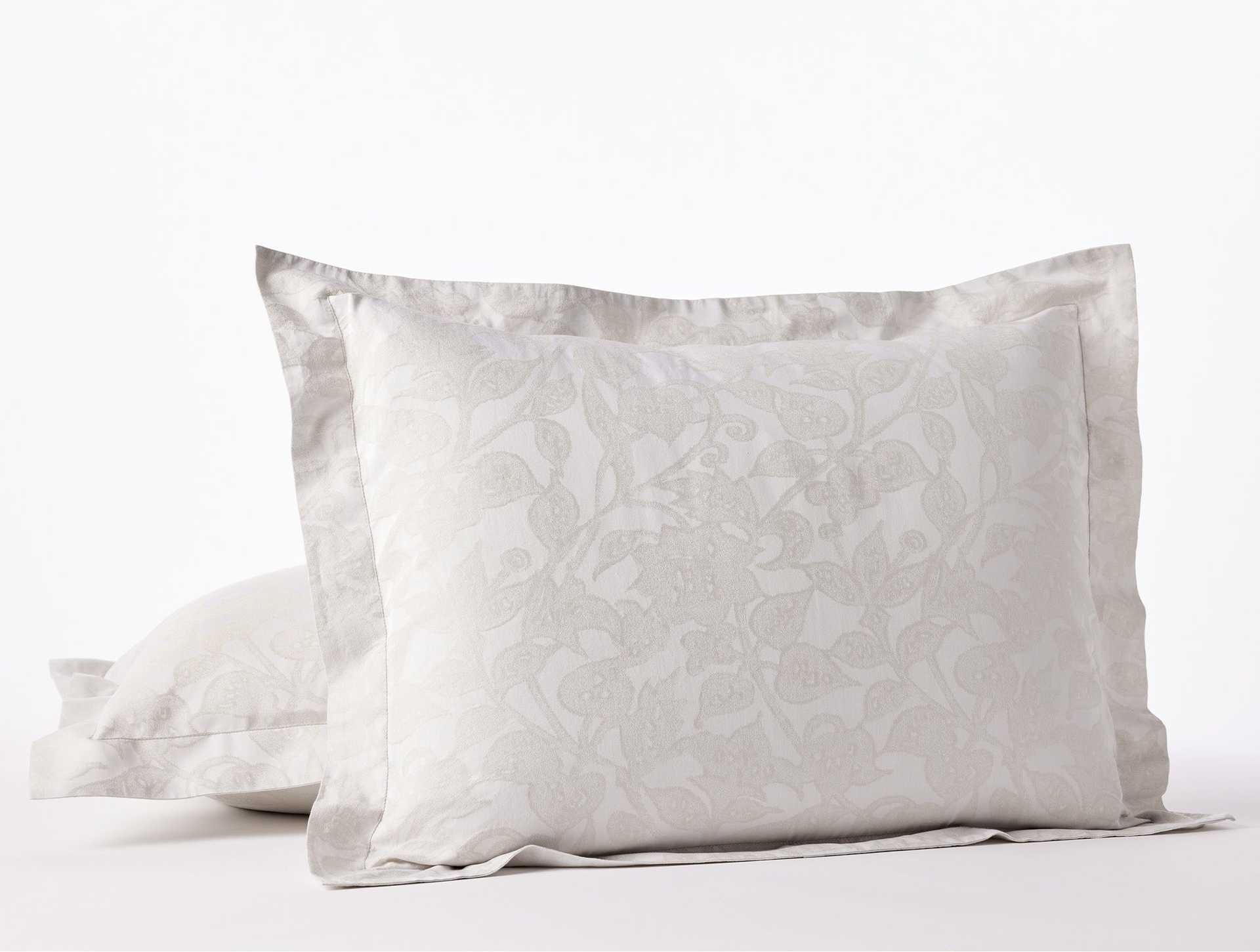 This pillow sham merges timeless elegance with exceptional craftsmanship, made from 100% American-grown organic cotton for a crisp and smooth feel. Its intricate jacquard weave with a delicate leaf pattern offers an eco-friendly, luxurious touch for a refreshing and sophisticated addition to any bedroom.