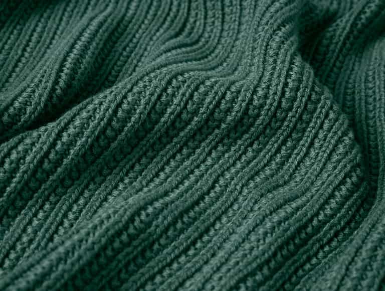 The Linea Organic Knit Throw blends vintage sweater texture with modern warmth, featuring a ribbed seed stitch and a high-low knit pattern in a rich evergreen tone, made from 100% GOTS-certified organic cotton with a classic links knit hem. Soft, breathable, and versatile, it adds cozy texture to a sofa or bed without overpowering existing decor.