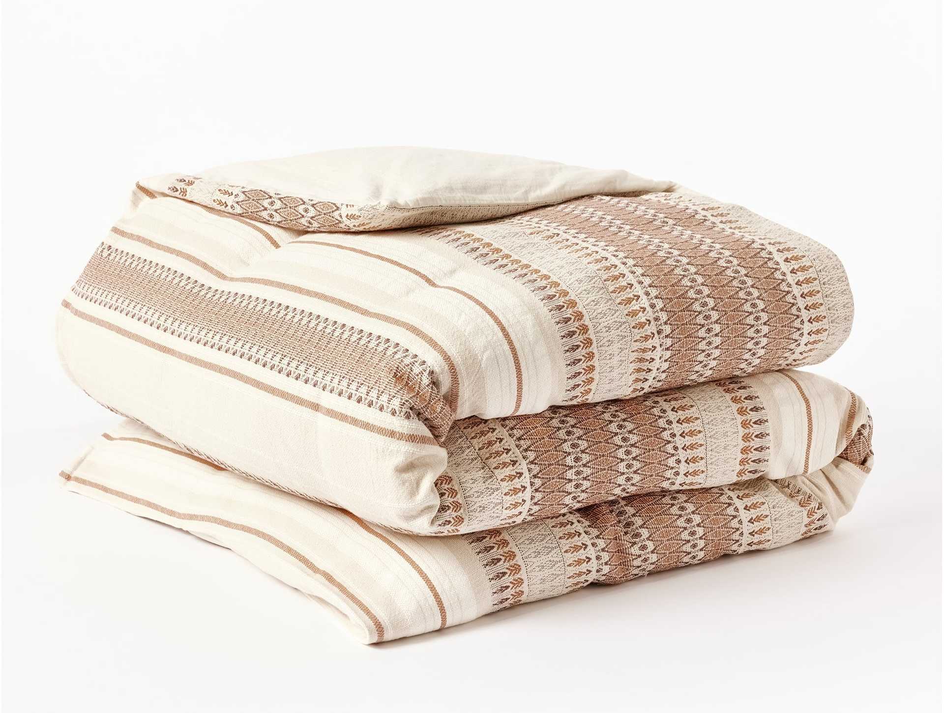 The Lost Coast Organic Duvet Cover brings a touch of nature to the bedroom with its dobby woven stripes, crafted for detail and texture. Backed by undyed cotton, it offers a pleasing contrast and natural warmth, designed for cozy comfort.