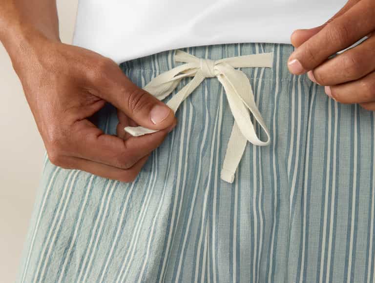 Discover ultimate comfort with Men's Organic Crinkled Pajama Pants, featuring soft percale fabric and pure organic cotton for breathable relaxation. These pants provide an adjustable fit with an elasticized waistband and convenience with side-seam pockets for small essentials.