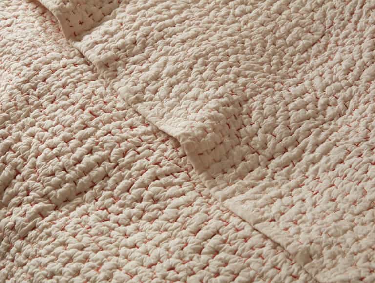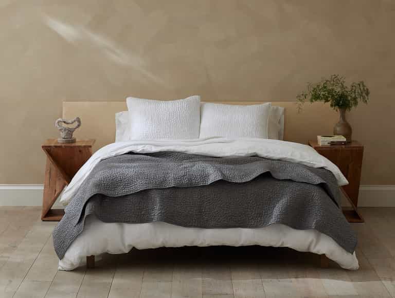 Inspired by traditional kantha quilts, the Pebbled Handstitched Quilt Set blends hand-stitched detail with breathable, year-round comfort. Crafted from premium organic cotton for both interior batting and outer shell, it features natural texture variations that add a calm, cozy look to any decor.