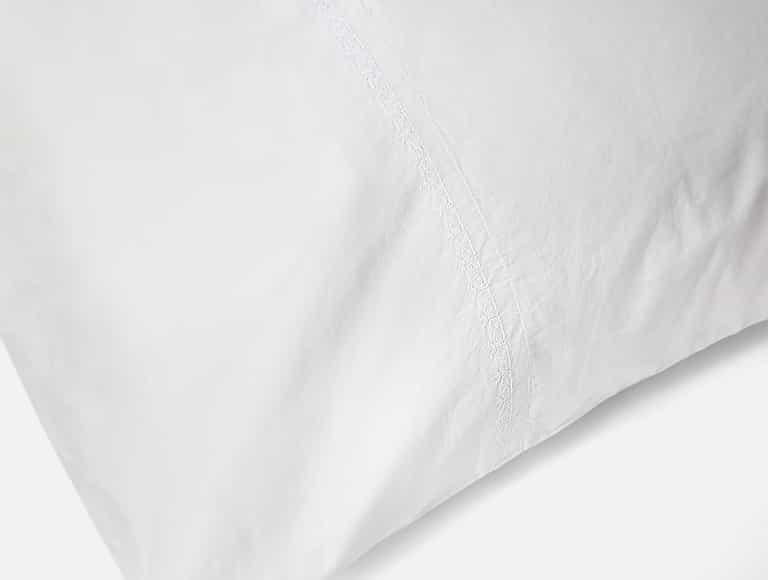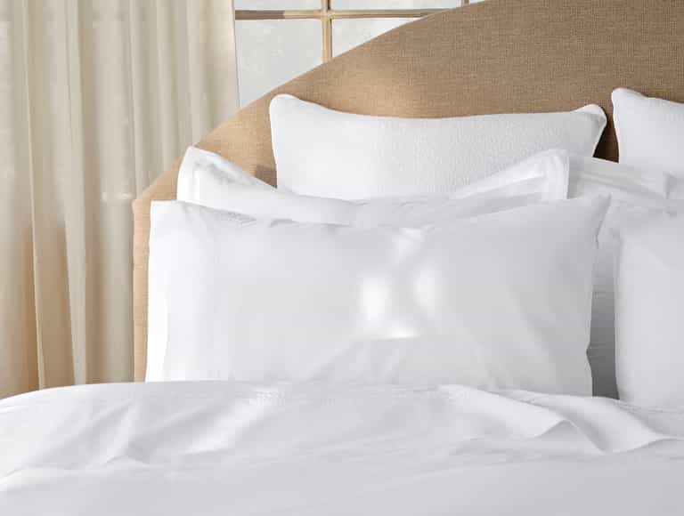 The pillowcase set combines softness, cooling comfort, and refined embroidery to enhance the look of a bed without overpowering the room.