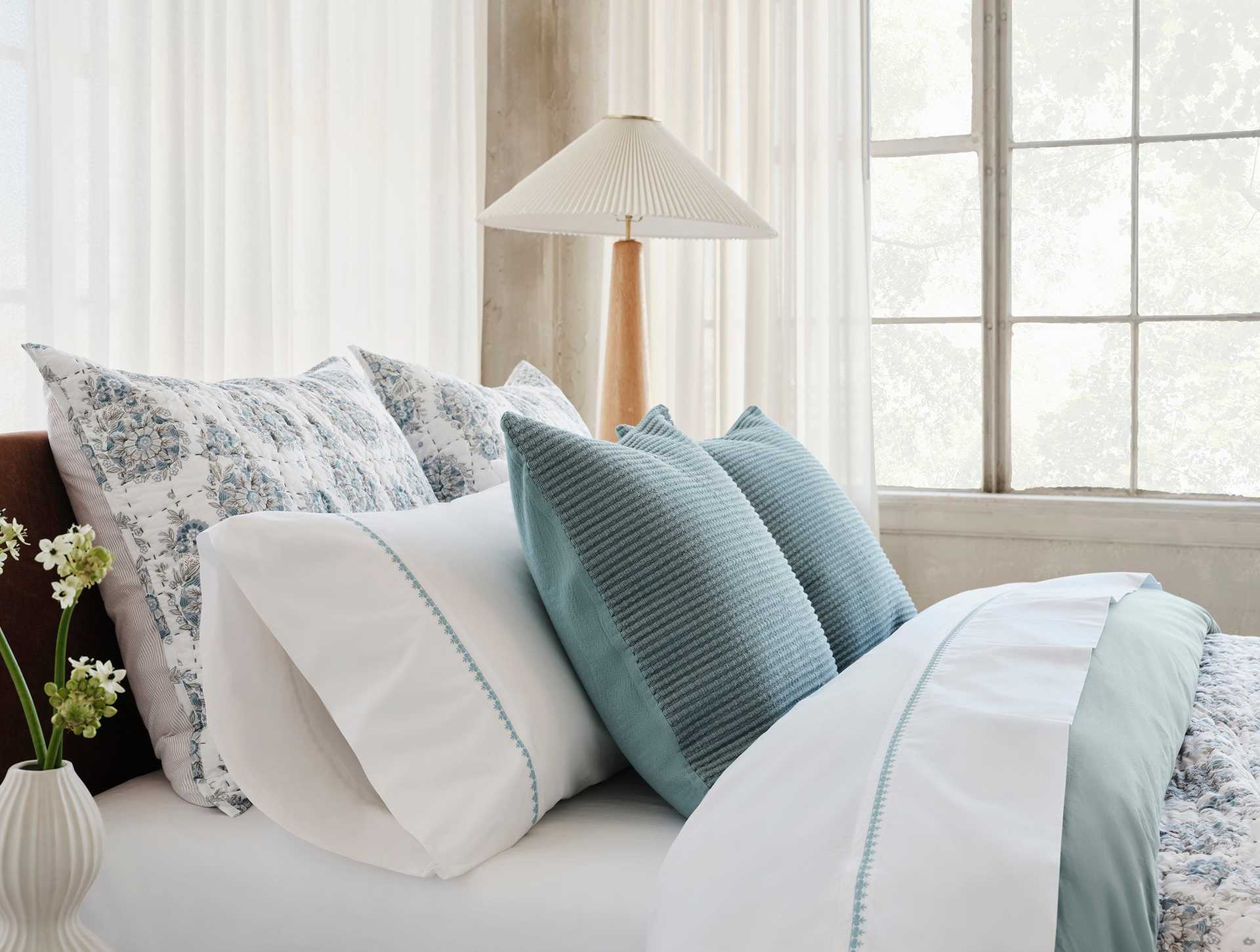 The Floret Embroidered Organic Sheet Set adds a refined, nature-inspired elegance to your bedroom. This set showcases a delicate floral pattern, inspired by traditional hand-embroidery techniques, for a subtle yet sophisticated look.