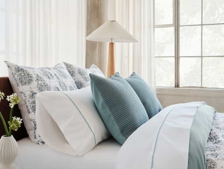The Floret Embroidered Organic Sheet Set adds a refined, nature-inspired touch to the bedroom. Crafted from crisp percale, these sheets stay breathable and cool for year-round comfort. Delicate floral embroidery, accented with a matte thread from Germany, provides subtle texture and quiet beauty.