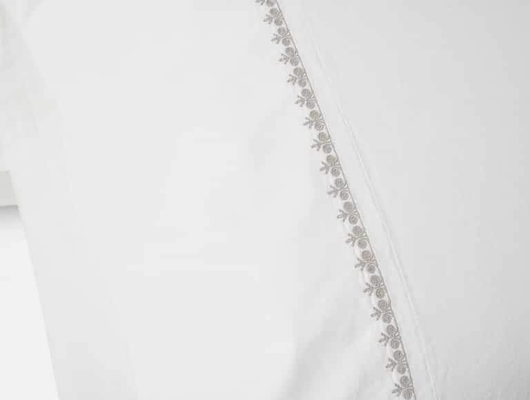 The Floret Embroidered Organic Sheet Set brings a refined, nature-inspired touch to the bedroom. Inspired by traditional hand-embroidery techniques, the delicate floral pattern offers a subtle yet elegant look. Crafted from crisp Refined Organic Percale, these sheets are breathable and cooling for year-round comfort. Luxurious matte thread from Germany adds texture and beauty to the embroidery, while the 100% GOTS Certified organic cotton provides a soft, skin-friendly feel.