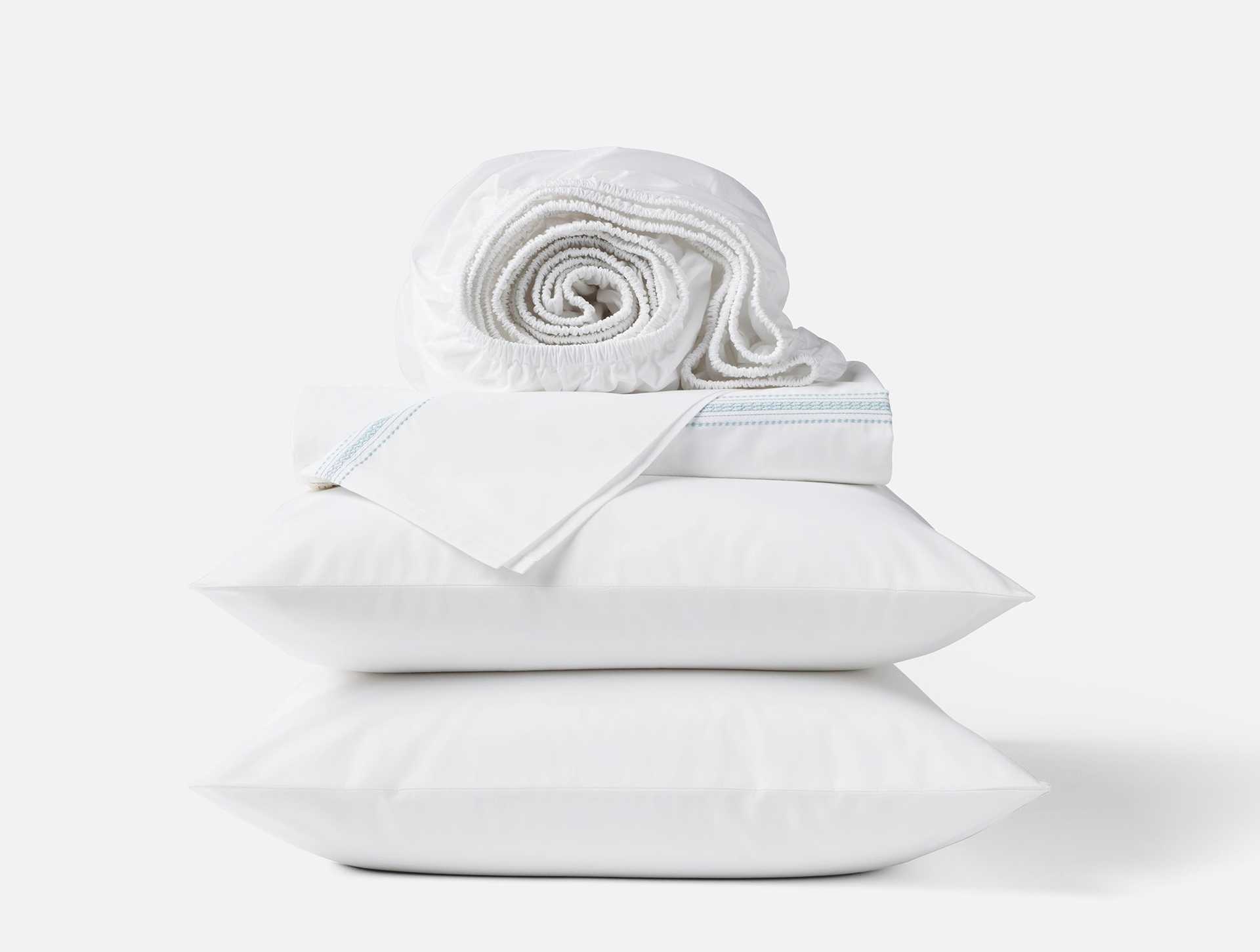 Our Landscape Embroidered Organic Percale Sheet Set features intricate geometric patterns inspired by vintage deco lace trimmings. Its meticulous embroidery uses the finest, most luxurious matte thread from Germany. Crafted from crisp Refined Organic Percale, these sheets feel gentle on the skin, providing a breathable feel for cooling comfort throughout the year.
