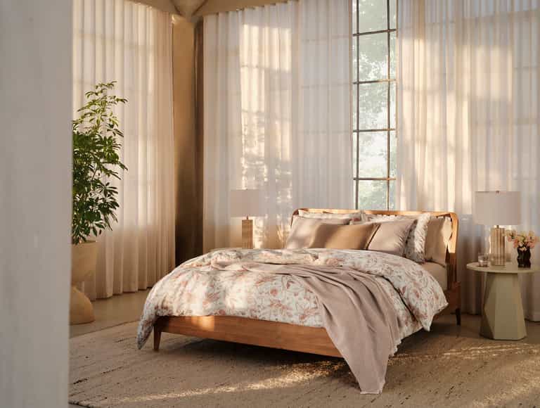 Sea Bloom Print Duvet Set brings wild flora into a bedroom with an antique floral pattern in calming greens or warm earthy tones. Made from a linen and organic cotton blend at an esteemed mill in Portugal, it combines the textured look of linen with the soft comfort of cotton. It becomes softer and more relaxed with every wash. Finished with coconut shell button closures, this duvet set offers a timeless, environmentally conscious layer that pairs well with Relaxed Organic Linen or cotton sheet collections.