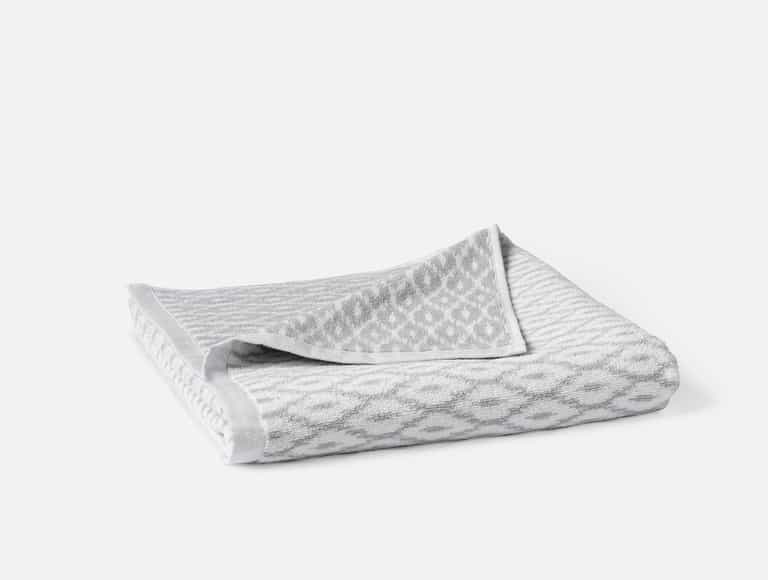 Stinson Organic Towels are made from 100% organic cotton, with a geometric ikat-inspired pattern woven in a plush terry jacquard for a soft, textured feel. The reversible design delivers two bold looks, while flat canvas hems and loops make hanging easy and keep towels soft, absorbent, and comfortable on skin.