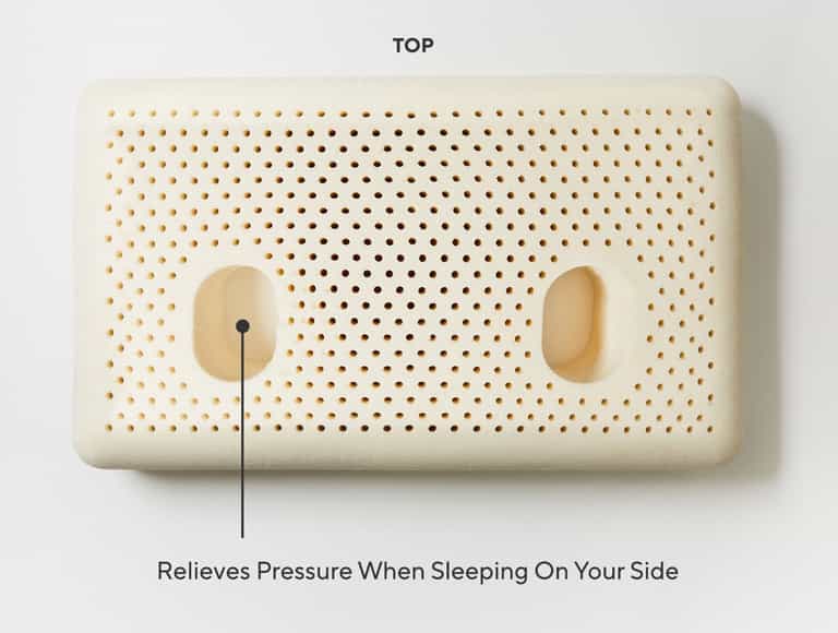 Made with pure, GOLS-certified organic Dunlop latex for breathable, long-lasting support. The aerated material is sculpted with indentations for the head and ears, offering premium comfort for both side and back sleepers.