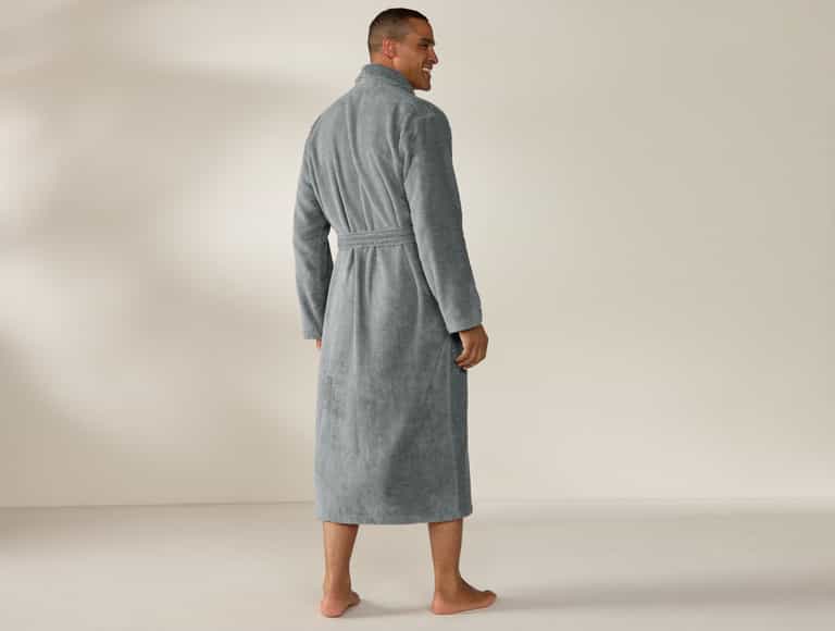 Unisex Cloud Loom™ Organic Robe blends plush softness with everyday practicality. Inspired by Cloud Loom towels, it uses long-staple cotton woven into single loops for a thick, plush yet lofty feel. The Aerospin process aligns fibers in each yarn, delivering a robe that is soft and absorbent like towels but with a touch smoother and sleeker.