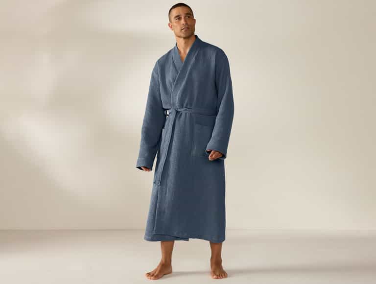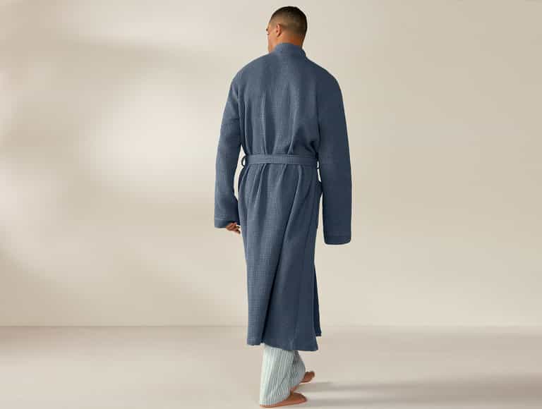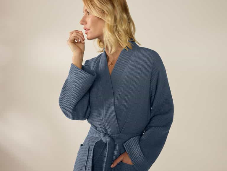 Soft, breathable organic cotton in a lightweight waffle weave keeps you comfortable, and pre-tumbled softness makes it feel plush from day one and even softer after each wash. This unisex robe features belt loops and a self-tie for a secure fit and roomy patch pockets for essentials, delivering spa-like comfort for everyday wear at home.