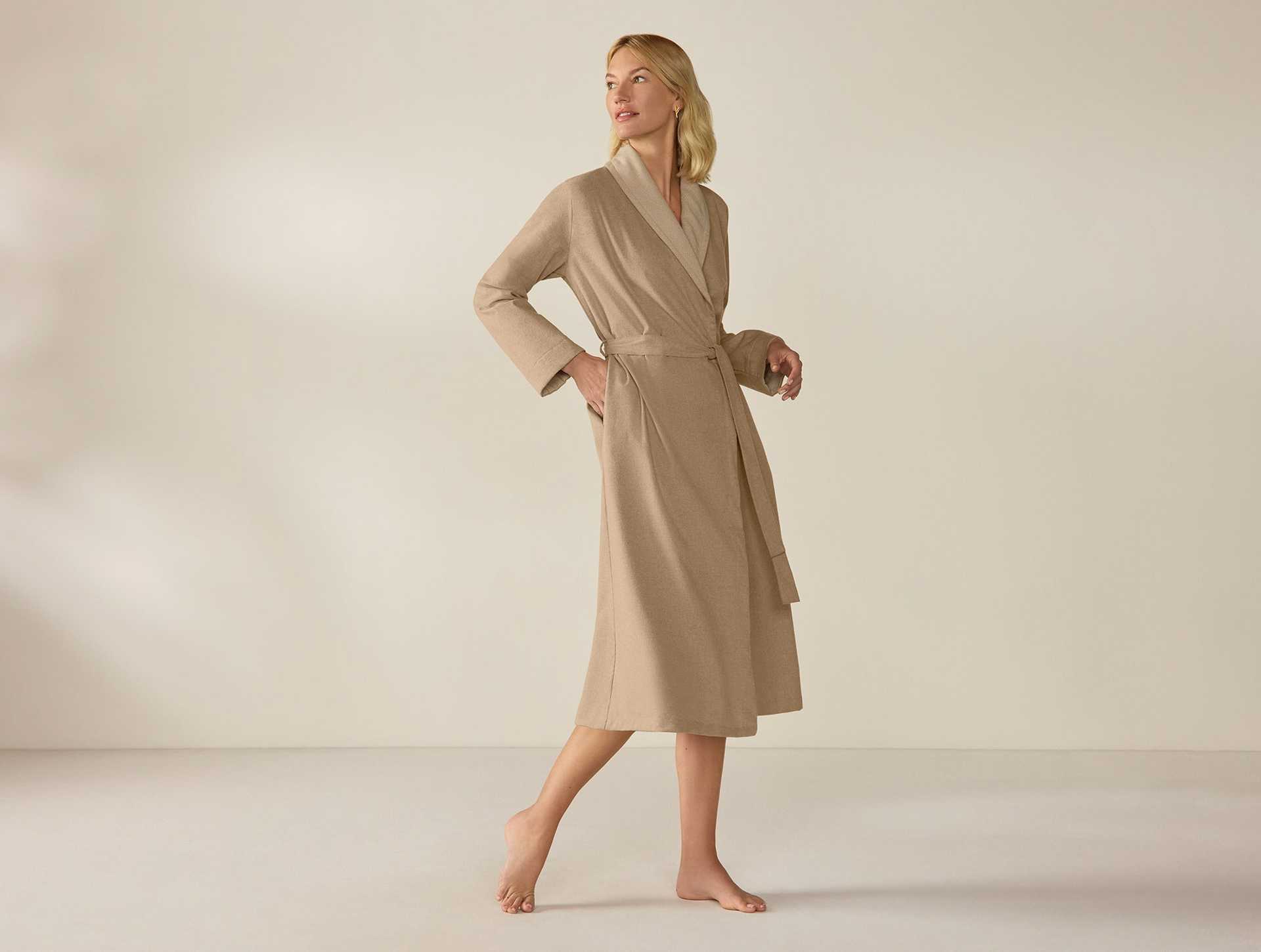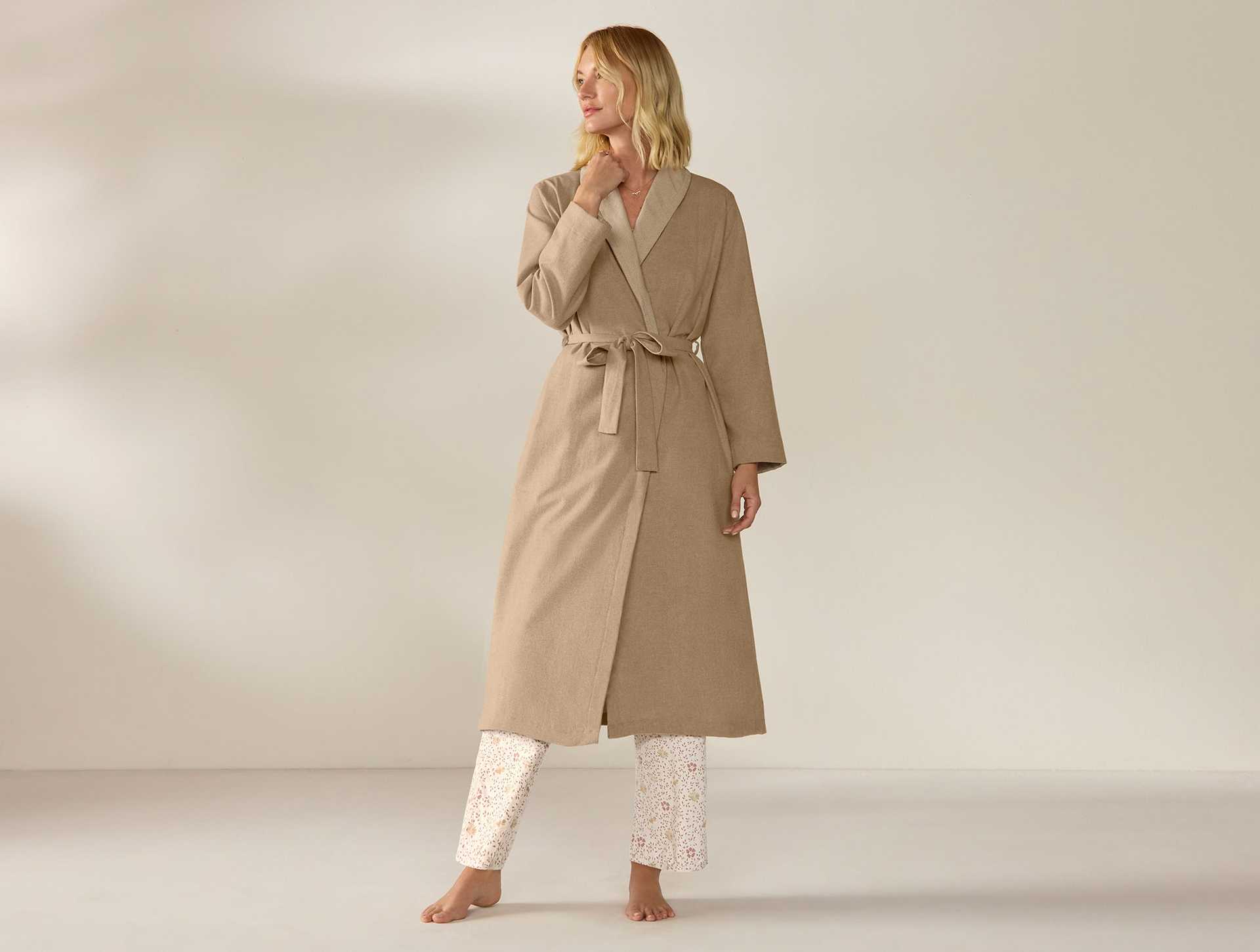 Experience pure comfort with the Women's Cloud Brushed Organic Flannel Robe, crafted from 100% organic brushed cotton for a velvety soft touch. Designed with a shawl collar and a slightly tapered waist, this robe delivers elegant coziness and a snug fit after the first wash, perfect for year-round lounging.