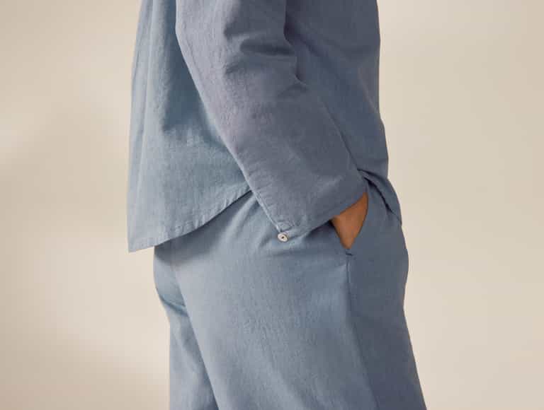 Soft, breathable organic cotton makes the Isla Organic Cotton Long-Sleeve Pajama Set gentle on skin, while garment-washed poplin grows softer with each wash. Practical pockets and a comfortable fit add everyday ease for relaxed nights and lounging.