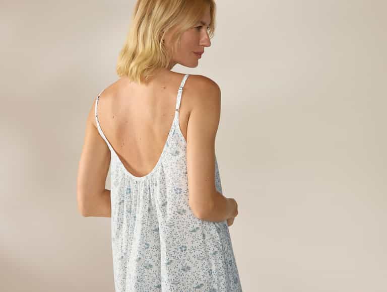 Light and airy, the Isla Organic Cotton Night Dress uses breathable 100% organic cotton percale for gentle skin contact. A relaxed A-line silhouette with a calf-length hem, a low open back, adjustable spaghetti straps and hidden seam pockets combine easy comfort with practical style for restful nights.