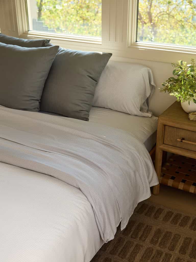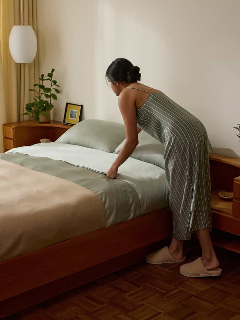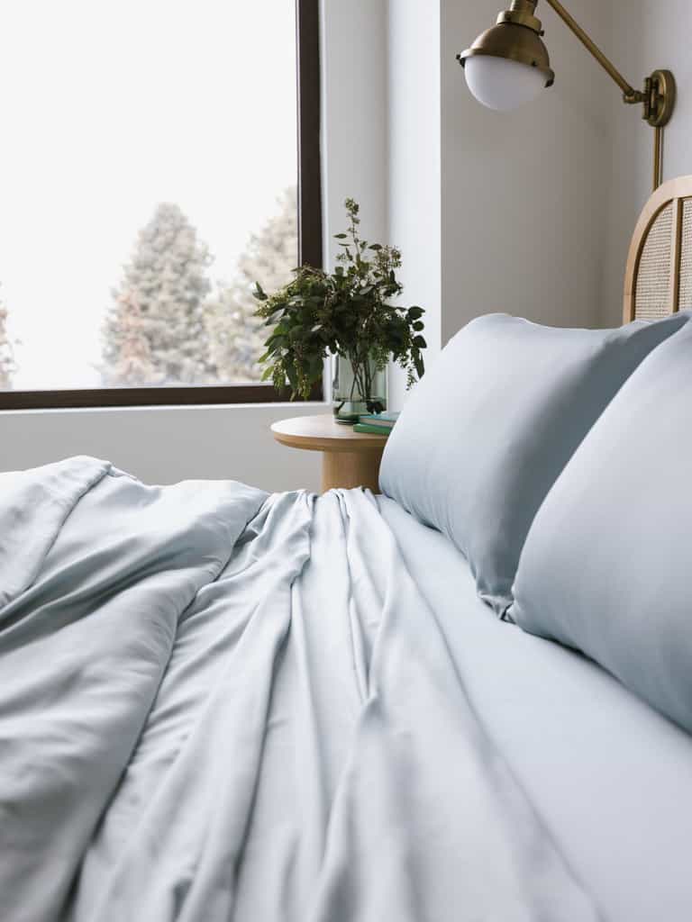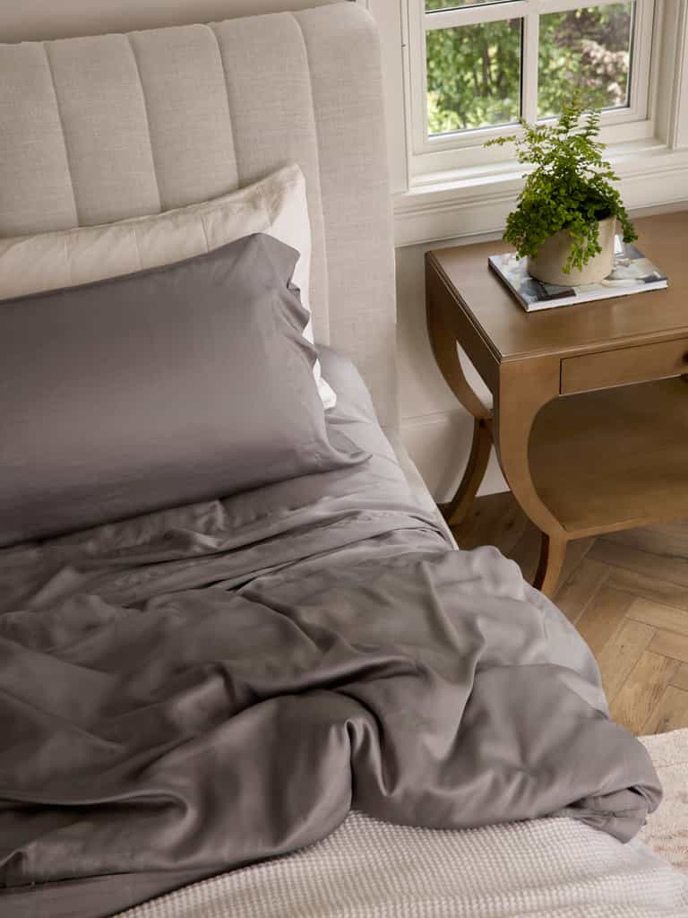 The Bamboo Flat Sheet by Cozy Earth is ultra-soft and breathable, crafted from 100% bamboo viscose with a silky sateen finish. A breathable weave helps regulate temperature for all-night comfort, and the oversized fit adds generous drape for effortless bed styling.