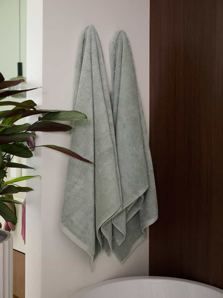 A classic redefined. The Ribbed Terry Bath Towels blend cotton and bamboo viscose into a plush towel with a soft ribbed texture. Ultra-absorbent and designed for lasting performance, it also features a hanging loop for easy drying.