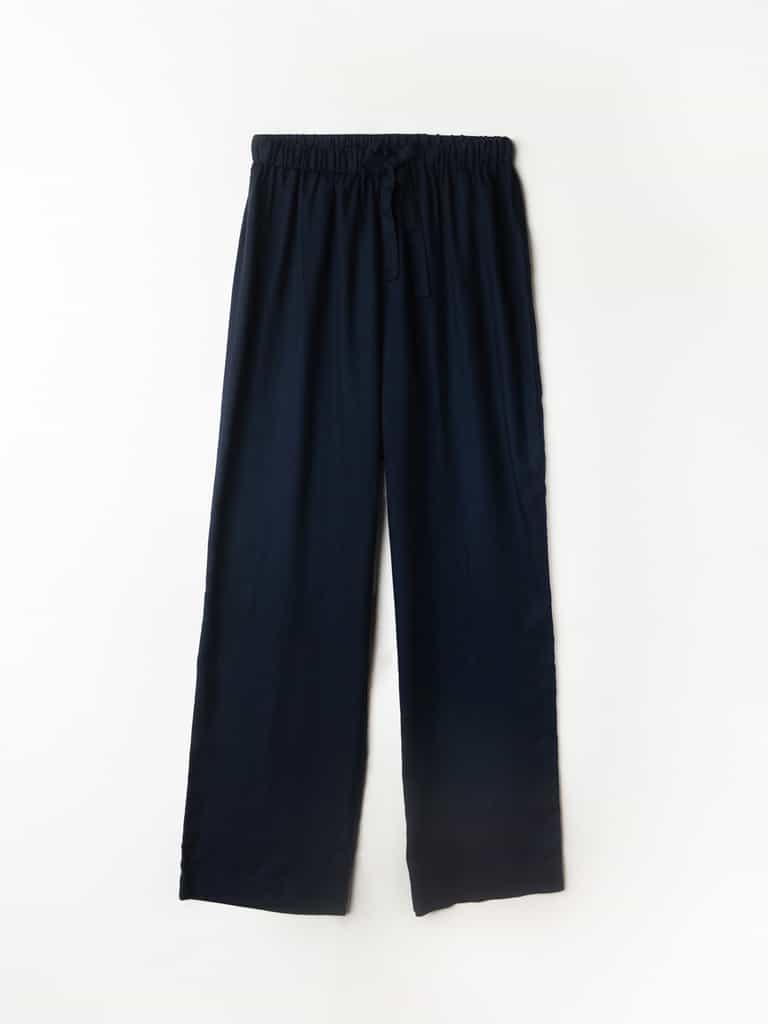 Soft woven pajama pant blends bedtime elegance with everyday comfort, crafted from a Rayon and Tencel blend for a soft, breathable feel and an adjustable elastic waistband for a refined fit. The relaxed silhouette, easy-care durability, and limited Last Chance stock make this pant ideal for lounging and sleep.
