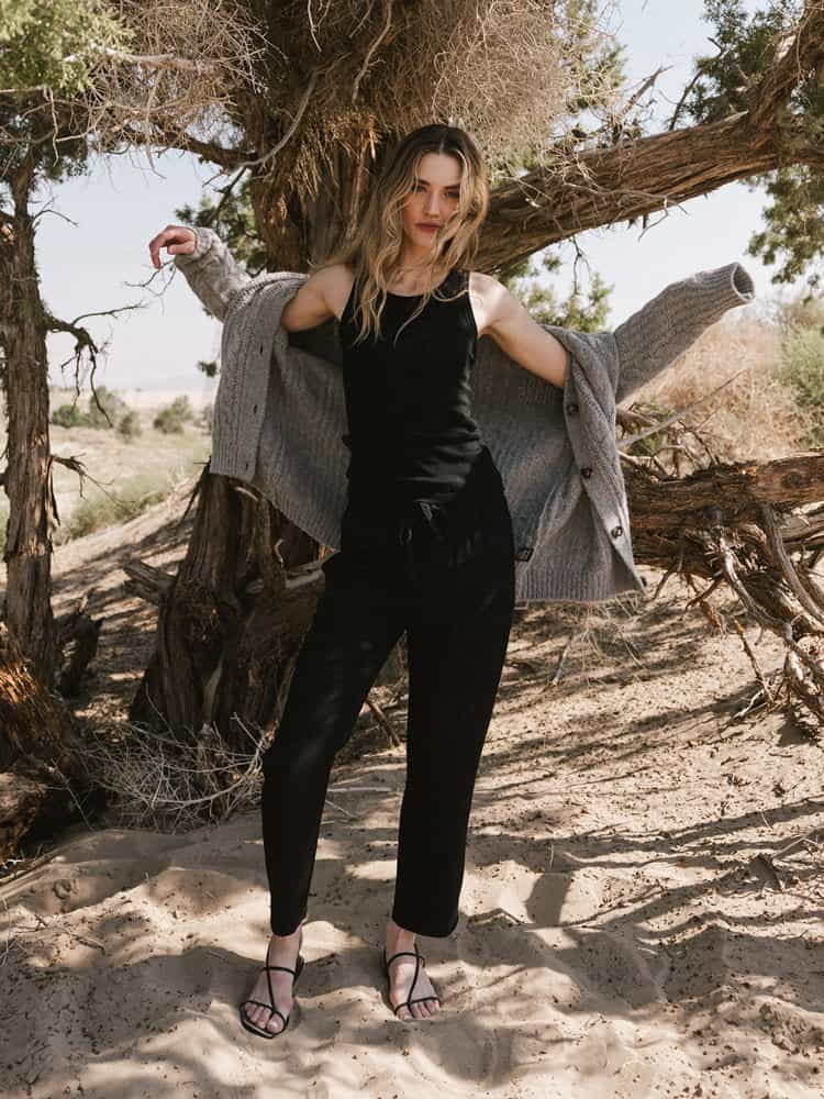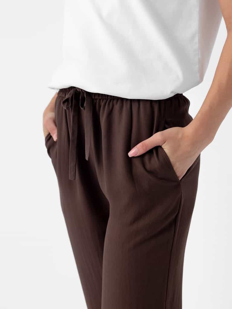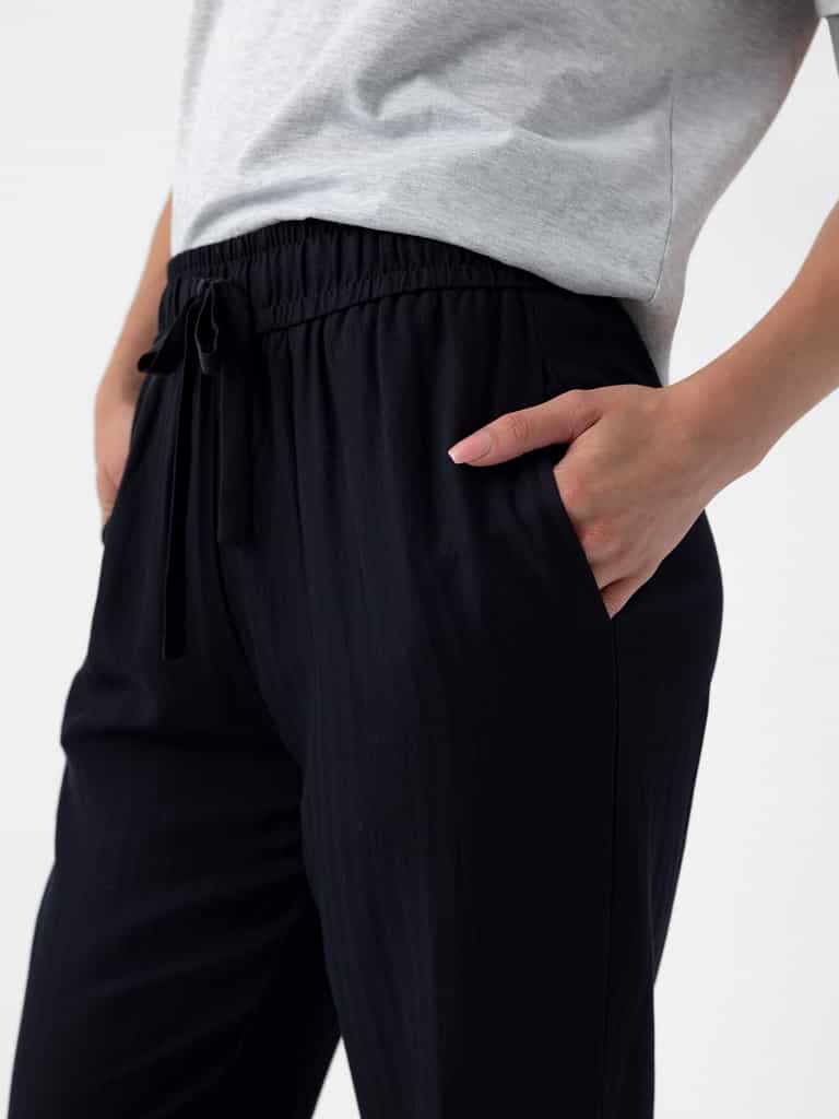 The Women’s Sunset Cropped Pant – Last Chance blends comfort and style with a relaxed jogger feel and a refined trouser look. Made from a luxe Rayon and Tencel blend with a mini herringbone weave, the pants are lightweight and breezy for warm days and cool nights.