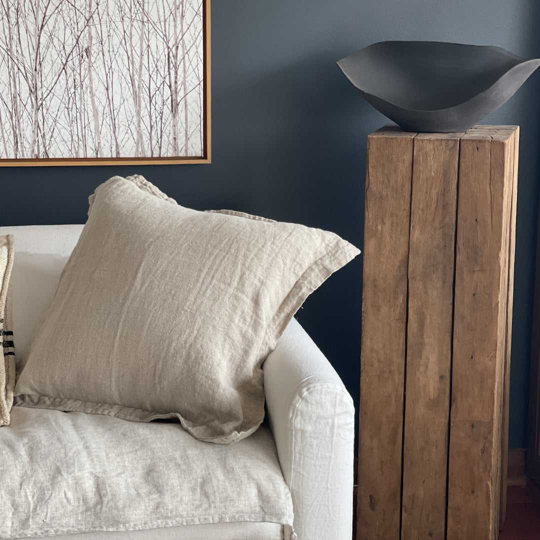 Introducing the Cushion Adele, a beautiful addition to any home. Made from heavy decorative linen, it exudes natural elegance and versatility, fitting seamlessly into various spaces.