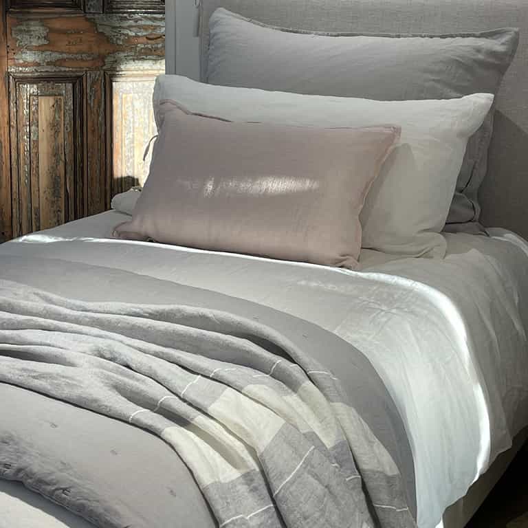 The Cushion Antoinette, crafted from heavy decorative linen, adds elegance and versatility to any space with its natural charm and adaptable design. It offers plush comfort with a feather filling, an easy-care envelope closure, and a refined finish with a detailed border.