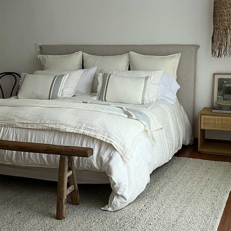 The Eloise Linen Cushion adds elegance and a natural touch to any space. Made from durable medium-weight linen, this decorative cushion complements bed runners and bedding effortlessly.