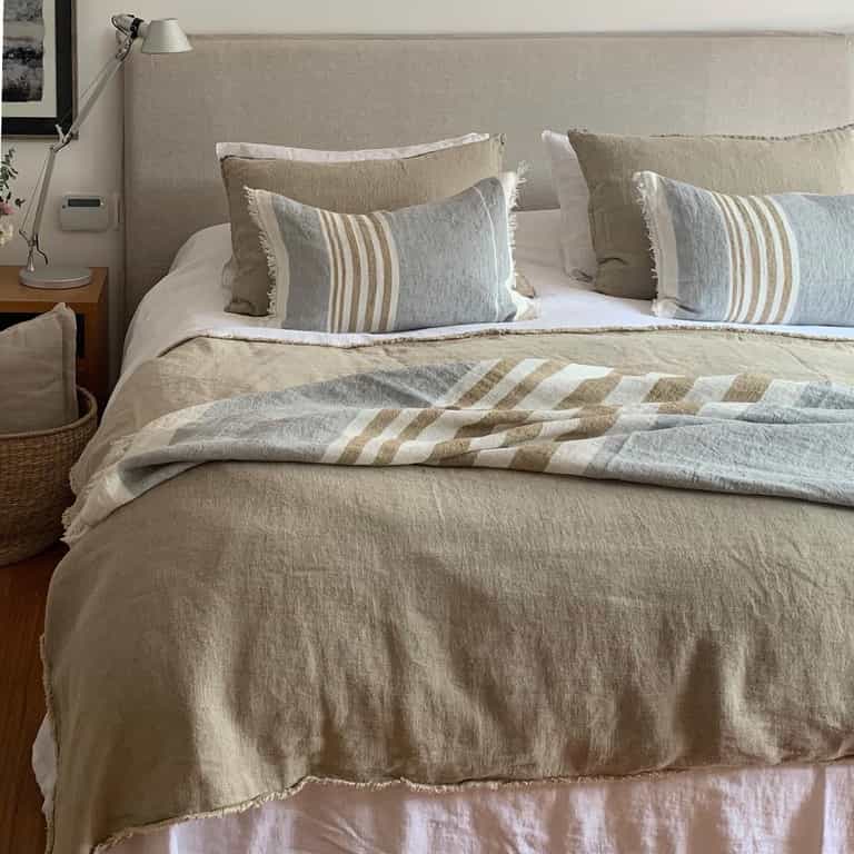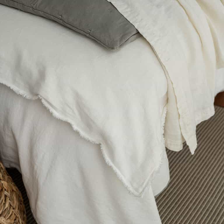 The Bed Runner Duvet Native is crafted with 100% heavy-weight linen, featuring a stylish frayed edge finish. This versatile piece includes a zipper on the back, allowing for easy removal of the filling, perfect for customizing comfort and style in your bedroom.