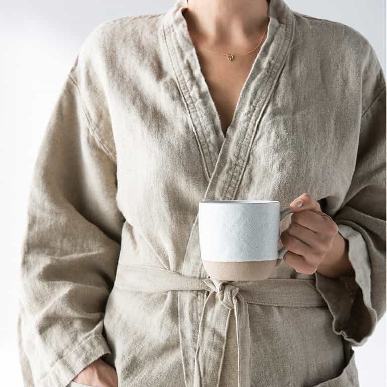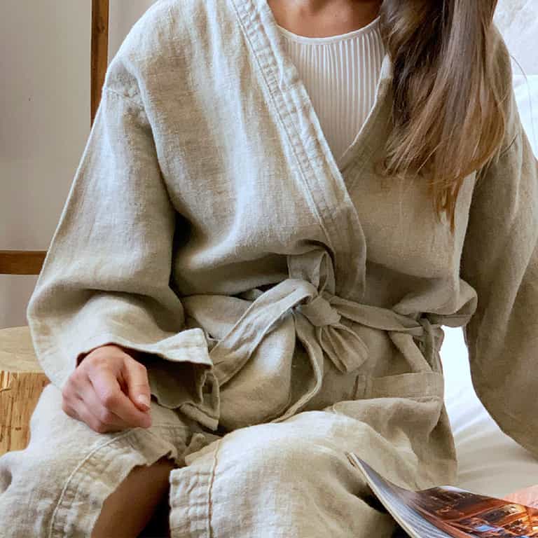 Immerse yourself in luxury every morning with this 100% linen robe, crafted to elevate your style with a heavyweight and refined texture. Its chic, loose fit and versatile natural hue promise comfort and elegance, transforming your daily routine into a sophisticated experience.