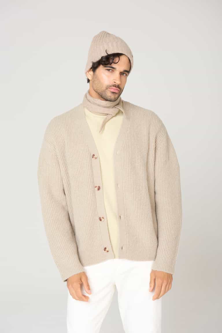 The Mini Scarf – Taupe is a lightweight cashmere scarf designed for versatile tying styles. Intricate cable details add texture, making it a go-to accessory that can layer with outfits or stand on its own.