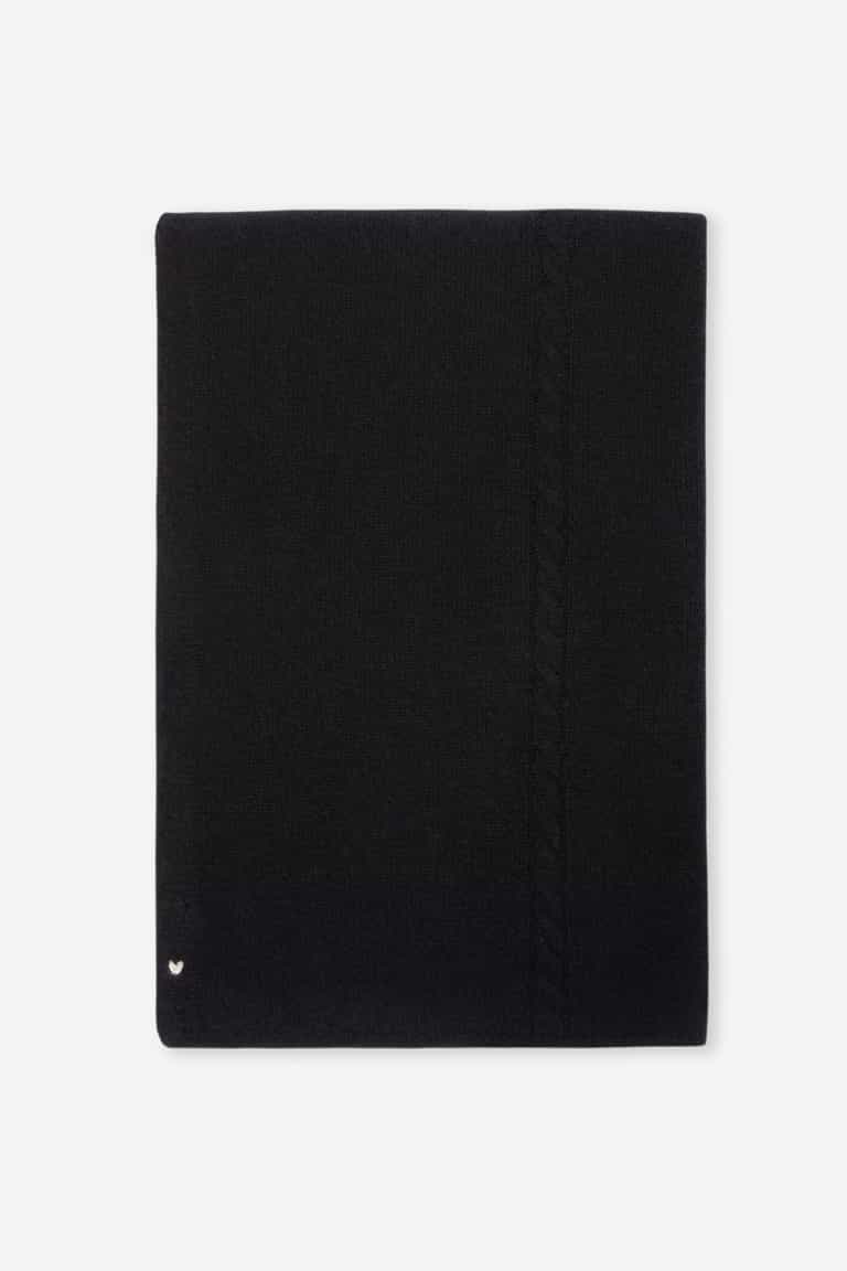 The Every Wrap – Black is a versatile, ultra-soft cashmere wrap that feels light as air and pairs with any outfit across seasons. It features three subtle cable details, a hand-finished edge, 100% premium cashmere sourced from Inner Mongolia, and a supersized size that doubles as a cozy blanket for extra warmth and comfort.