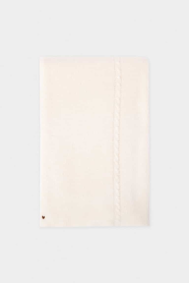 This versatile wrap is as light as a tissue and incredibly soft, making it an essential wardrobe accessory for any occasion. With its three elegant cable details and luxurious 100% premium cashmere, it effortlessly combines style and comfort, perfect for wrapping yourself in sophistication.