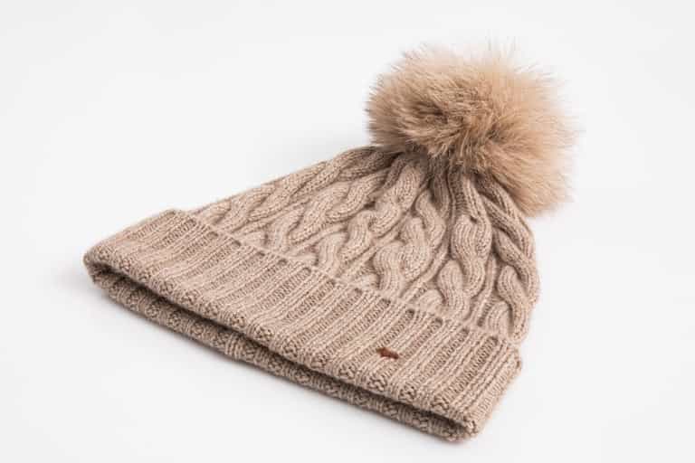 The Kids Cable Beanie in Taupe combines a classic cable knit with 100% premium cashmere, undyed and chemical-free for gentle skin and planet-friendly warmth. Hand-made by grandmother artisans, it features a cuffed hem for a snug or slouchy fit and a removable fox fur pom-pom for playful style.