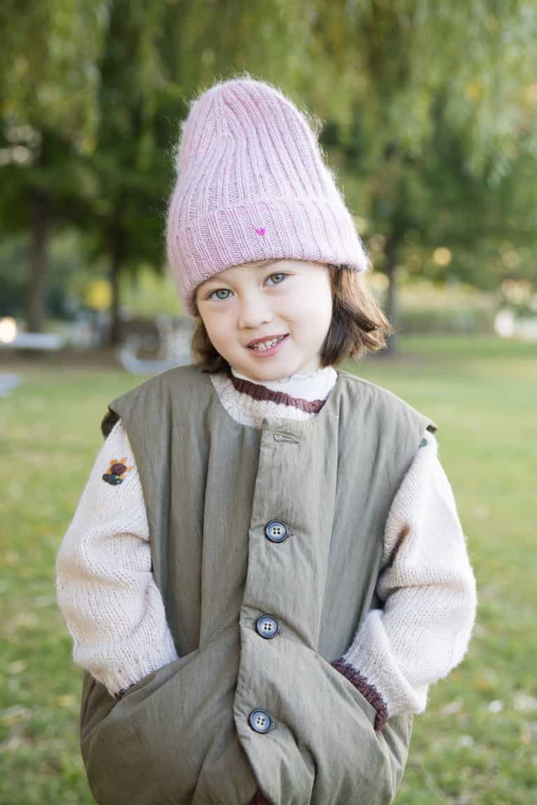The Kids Rib Beanie – Pink Prism adds a soft, fuzzy upgrade to a classic knit, blending a cashmere-rich blend with hand-dyed mohair and silk for warm, painterly color pockets. Handmade by grandmother artisans, it features an adjustable cuffed hem for a snug or slouchy fit and a cozy, textured finish.