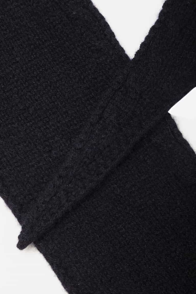 The Mini Scarf - Black is a lightweight cashmere scarf designed for versatile styling. Made from 100% premium cashmere, it feels soft against the skin and features delicate cable details for texture and durability.