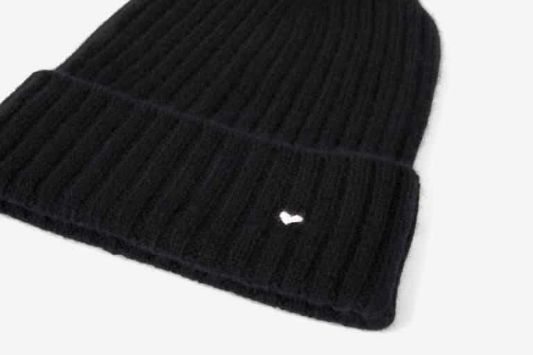 The Rib Beanie in Black features a classic rib knit and soft cashmere for warmth and everyday wear. Hand-made by grandmother artisans, it includes a cuffed hem that adjusts for a snug or slouchy fit and uses 100% premium cashmere sourced from Inner Mongolia for a refined, versatile look.