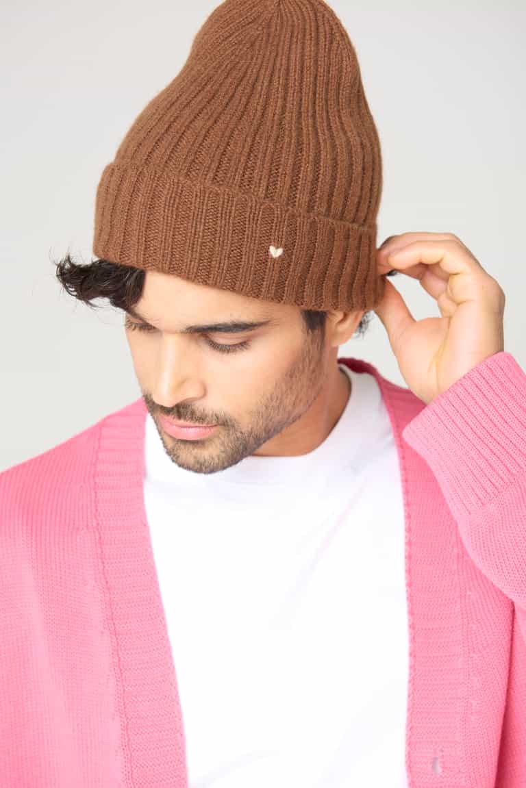 The Rib Beanie – Hazelnut blends a sleek rib knit with soft cashmere for a versatile, cozy accessory. With 100% premium cashmere, rib knit texture, hand-made by grandmother artisans, cuffed hem for a customizable fit, and a warm hazelnut color, it's light yet warm for everyday style.