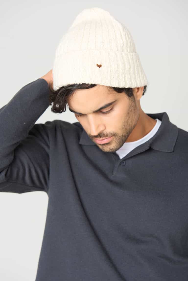 The Rib Beanie in Milk Boucle blends a sleek rib knit with bouclé-textured cashmere for a refined, modern look. Hand-made by grandmother artisans, this beanie brings warmth and everyday comfort.