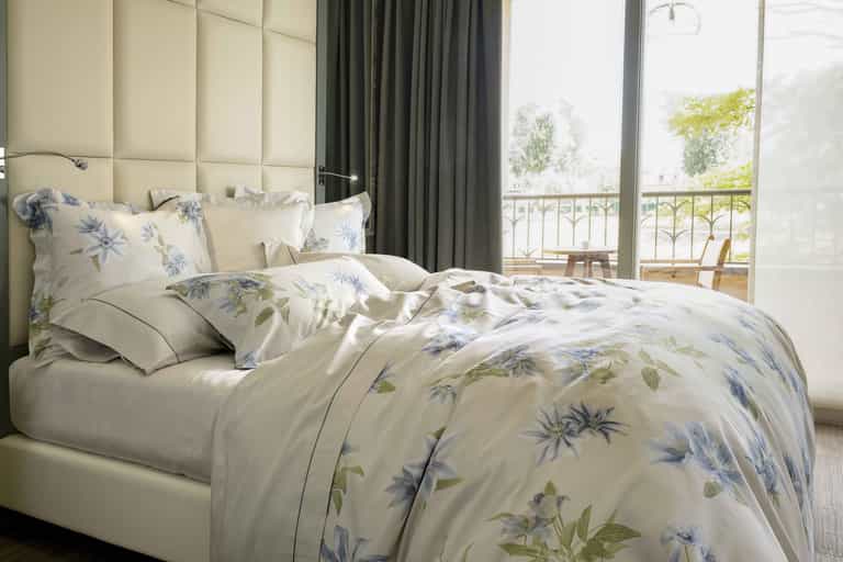 The Clematis Sham adds a light, elegant touch to bedding with a printed sateen finish. Made in Italy, this sham combines soft cotton with a clean, refined look inspired by the Clematis climbing flower.