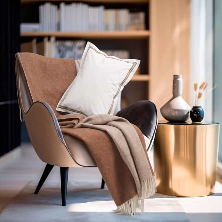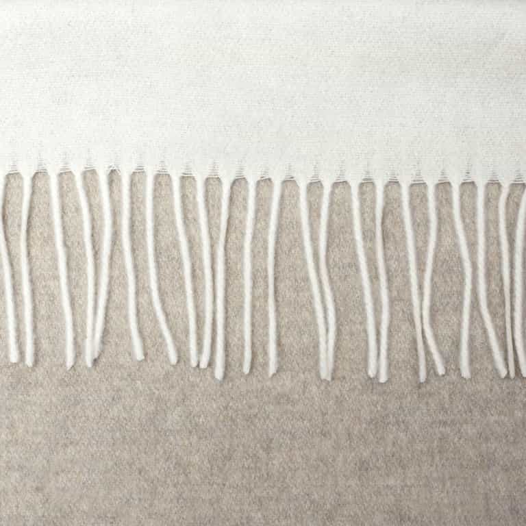 Dolomiti Throw by Signoria, made in Italy from 80% wool and 20% cashmere, adds soft warmth and refined style to any space. Its double-faced, reversible design and fringes provide two looks and a classic finish for decorating sofas, chairs, or beds.