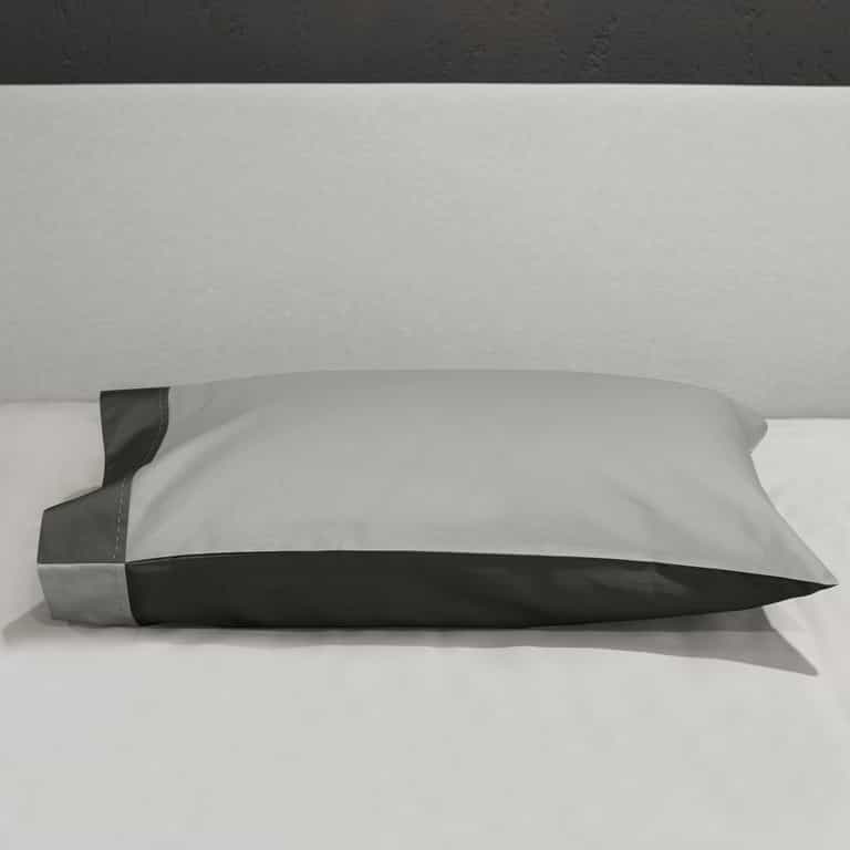 The Double Pillowcases offer a luxurious yet youthful look thanks to high-quality fabric and a modern design. They feature an applied border in a matching color and a coordinated stitch in the same color as the background. 100% reversible with two sides in different colors. Made of soft and durable long-staple cotton sateen, 300 thread count. Made in Italy. The set includes two pillowcases.