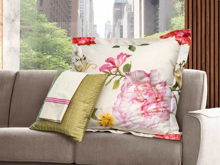 The Gioia Sham combines floral artistry with soft cotton sateen for a refined bedroom look. Flowers in varied shades bloom across a printed sateen, bringing joy and elegance to the space. Two color tones, brighter or softer, help the design coordinate with different décor. Made in Italy and finished with a simple hem.